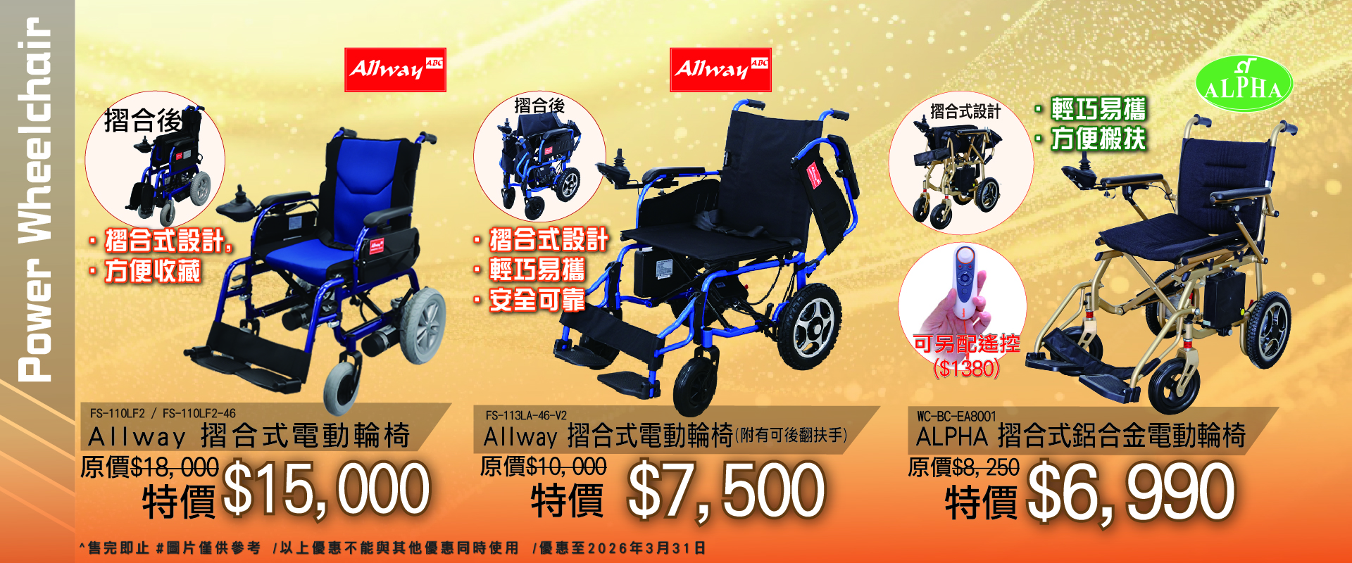 ALPHA摺合式鋁合金電動輪椅 EA8001 (可加購遙控及備用電池)