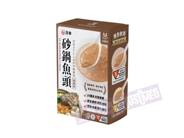 日幸砂鍋魚頭營養粥 120g舌壓碎軟餐 IDDSI 526種完整營養素高標準蛋白添加足量膳食纖維產地:台灣※本品屬特定疾病配方食品,非供靜脈注射用。※須經醫師或營養師指導使用,多食對改善疾病並無幫助。※過敏原:本產品含有大豆、芝麻、牛奶、魚類、甲殼類及其製品